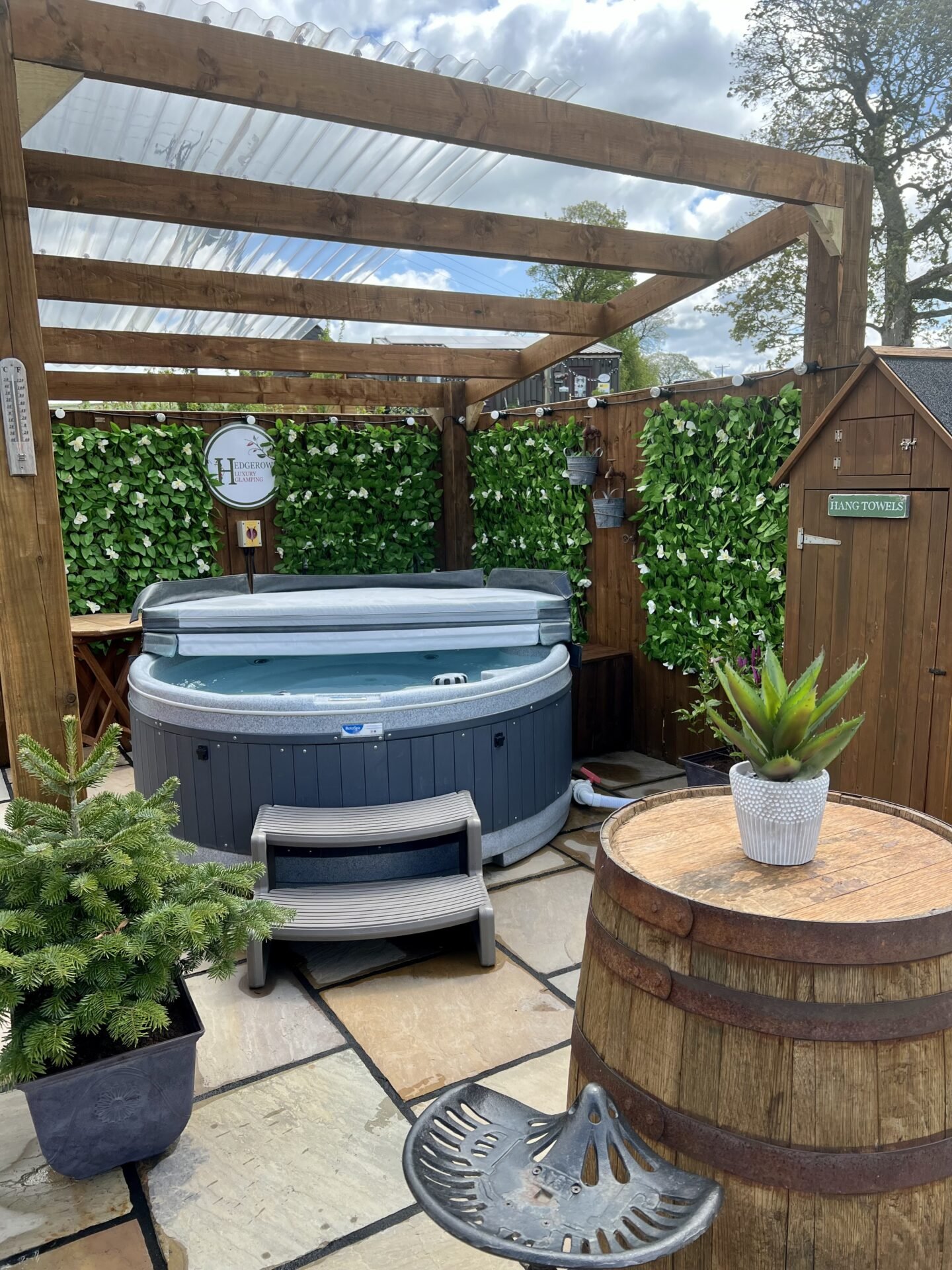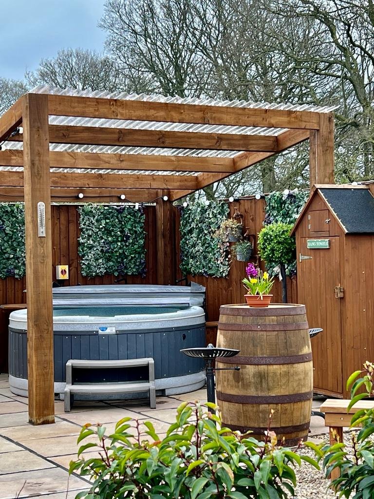 Each glamping pod comes with its own private deck and hot tub.